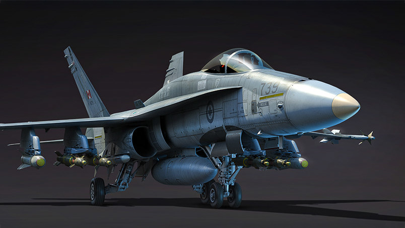 The CF-188A Hornet, often referred to as the CF-18, is a Canadian variant of the American F/A-18 Hornet fighter jet, adopted by the Royal Canadian Air Force (RCAF). The CF-188 has seen action in the Persian Gulf, Yugoslavia, NATO peacekeeping missions, and even recently in the Middle East. The jet is equipped with a 20 mm General Electric M61A1 Vulcan six-barrel cannon with semi-armor-piercing high-explosive incendiary rounds and a rate of fire of 6,000 rounds per minute. The cannon can easily penetrate light ground targets, and the radar sight simplifies use against aircraft. To destroy enemy aircraft, AIM-7P and AIM-9L missiles are mounted on the outer and inner pylons; for strikes against ground targets, the CF-188A can carry free-fall Mk 82, Mk 83 and Mk 84 series bombs (including high-explosive versions of the Snakeye and AIR), as well as unguided Zuni Mk 32 and CRV-7 rockets. High-precision strikes are provided by the laser-guided GBU-10, GBU-12, GBU-16 and GBU-24 Paveway III bombs, as well as AGM-65D/G Maverick missiles. Additionally, external fuel tanks and an AN/AAS-38B targeting and navigation pod with a thermal imaging and laser guidance system can be installed on the aircraft. |